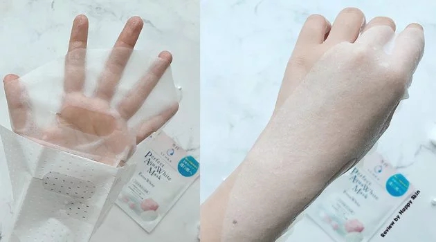 Ấn tượng đầu tiên khi đắp Extra Moist Mask lên da là chất mask mềm mịn, ôm sát mặt. So với 3 dòng còn lại thì em mặt nạ này có chất mask dày hơn hẳn, essence cũng đậm đặc hơn, đúng như tên gọi Extra Moist (giàu ẩm).
