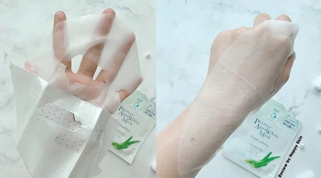 Như đã nói ở trên, chỉ có mask màu xanh dương là chất mask và essence dày hơn, còn em Soothing White Mask cũng như 2 em còn lại. Nói chung là mỏng mịn, ôm sát mặt, không quá nhờn dính.