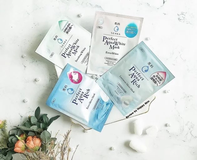 Happy Skin Review 4 dòng mặt nạ giấy Senka Perfect Aqua