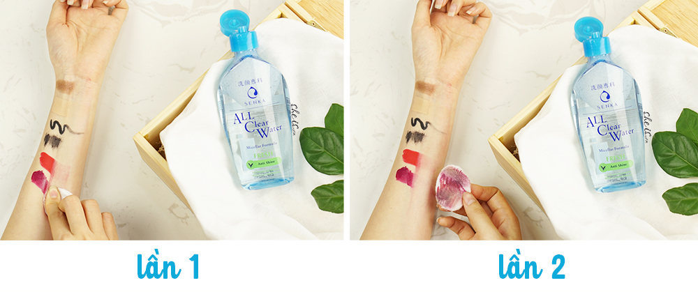 Sau 3 lần tẩy trang, các sản phẩm makeup đều được làm sạch hoàn toàn
