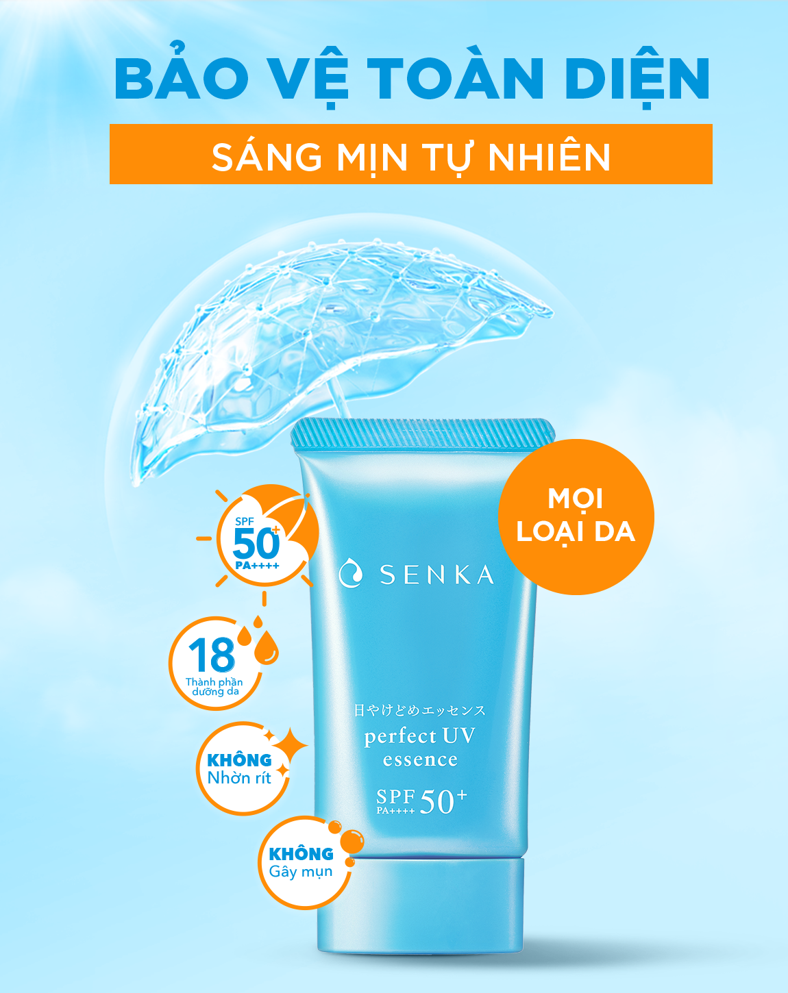 Kem chống nắng NÂNG TÔNG SÁNG MỊN TỰ NHIÊN dạng tinh chất Senka Perfect UV Essence (50g) - Cho MỌI LOẠI DA