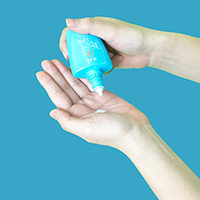 Lấy ra tay một lượng sản phẩm vừa đủ và thoa đều trên lòng bàn tay -