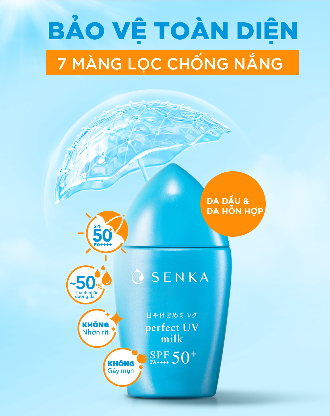 Kem chống nắng Kiềm Dầu dạng sữa Senka Perfect UV Milk (40ml) với 7 MÀNG LỌC CHỐNG NẮNG - Cho DA DẦU & DA HỖN HỢP