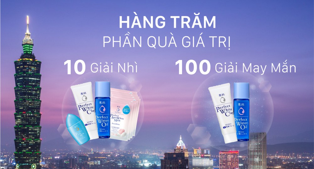* Ngoài ra, 100 bài dự thi đáp ứng đầy đủ các yêu cầu từ BTC sẽ được chọn ngẫu nhiên để nhận một Travel Kit từ Senka bao gồm 1 Sữa rửa mặt đất sét trắng Senka Perfect White Clay 40g và 1 Dầu tẩy trang sạch sâu Senka Perfect Watery Oil 35ml